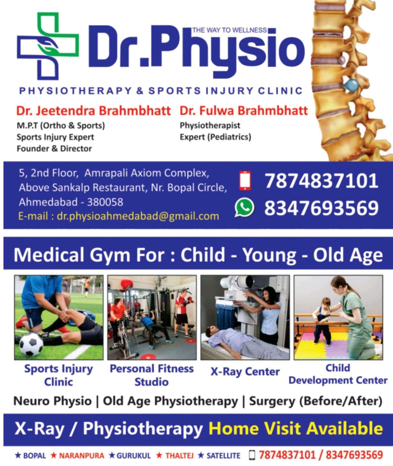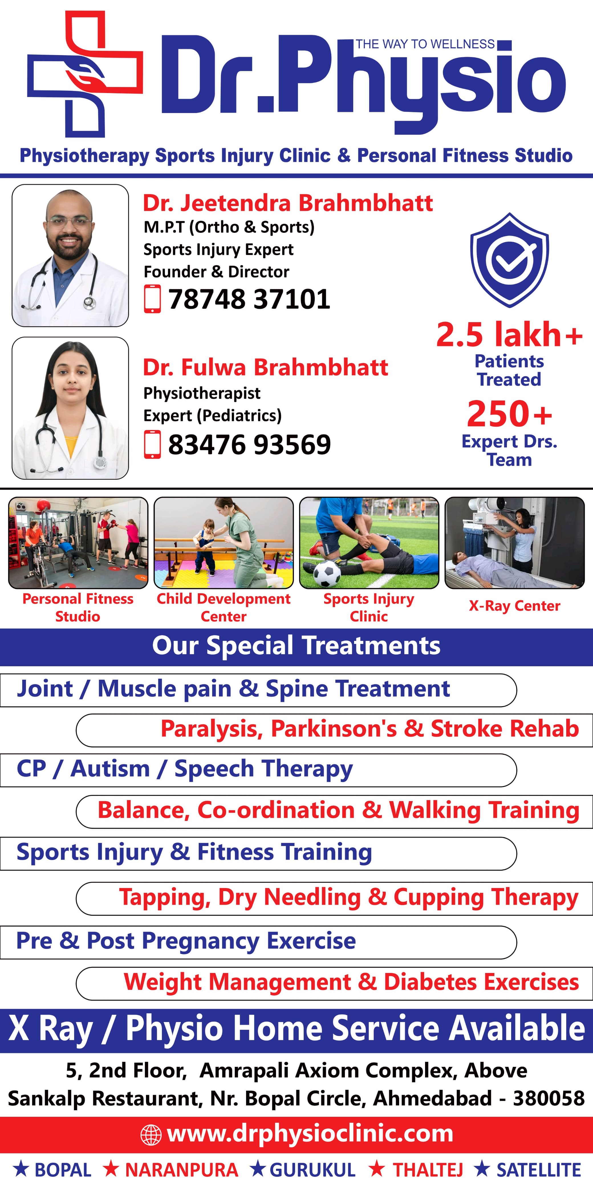 At DR PHYSIO Multispecialty Advanced Physiotherapy Clinic, we take pride in offering comprehensive care tailored to each individual's needs. Our approach begins with a thorough assessment and diagnosis, aiming to identify the root cause of your condition. With our expertise in physiotherapy treatment, we employ a range of techniques to address your concerns and restore your quality of life. Whether you're experiencing pain, mobility issues, or any other physical discomfort, our team is committed to providing you with the highest level of care. We believe in empowering our patients to regain their strength, mobility, and overall well-being, enabling them to return to their daily activities pain-free and with improved function. Regardless of your age or the nature of your condition, we are here to support you on your journey to wellness. From children to elders, we offer specialized care tailored to meet the unique needs of each individual. Your health and satisfaction are our top priorities, and we are dedicated to helping you achieve the results you desire. At DR PHYSIO, we are "Happy to help you" every step of the way, guiding you towards a healthier, more active lifestyle. Choose the safer option for your health and well-being, and let us assist you in achieving all your goals. Experience all the gains on the path to wellness with our expert physiotherapy services. .
